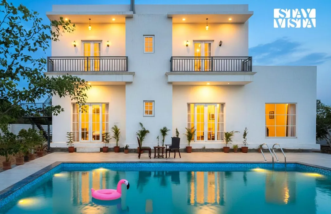 The 3-bedroom Stayvista At Mustang Meadow - Lawn & Wifi Jaipur villa features views of the garden so that guests can enjoy. Bathroom comforts include free toiletries.